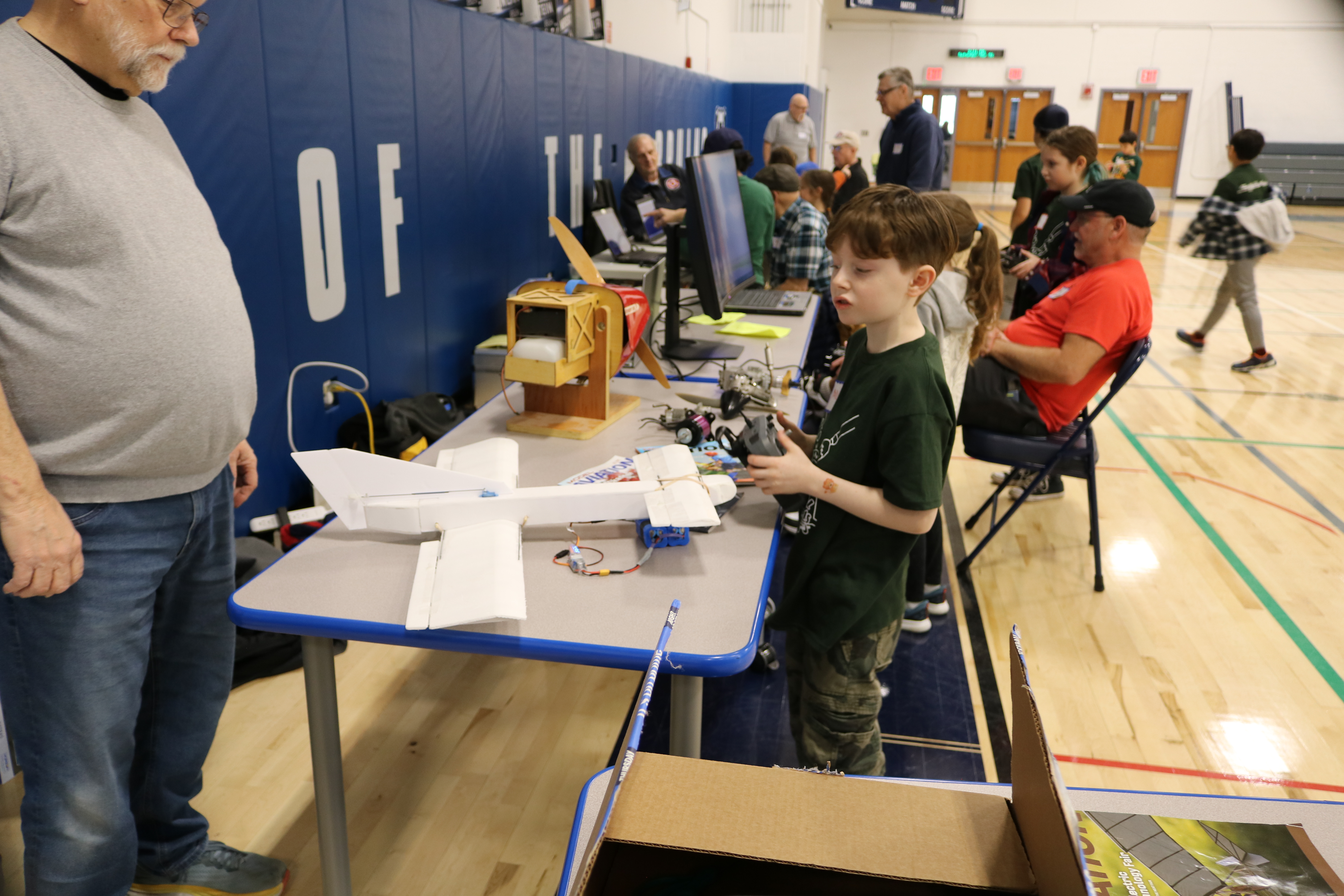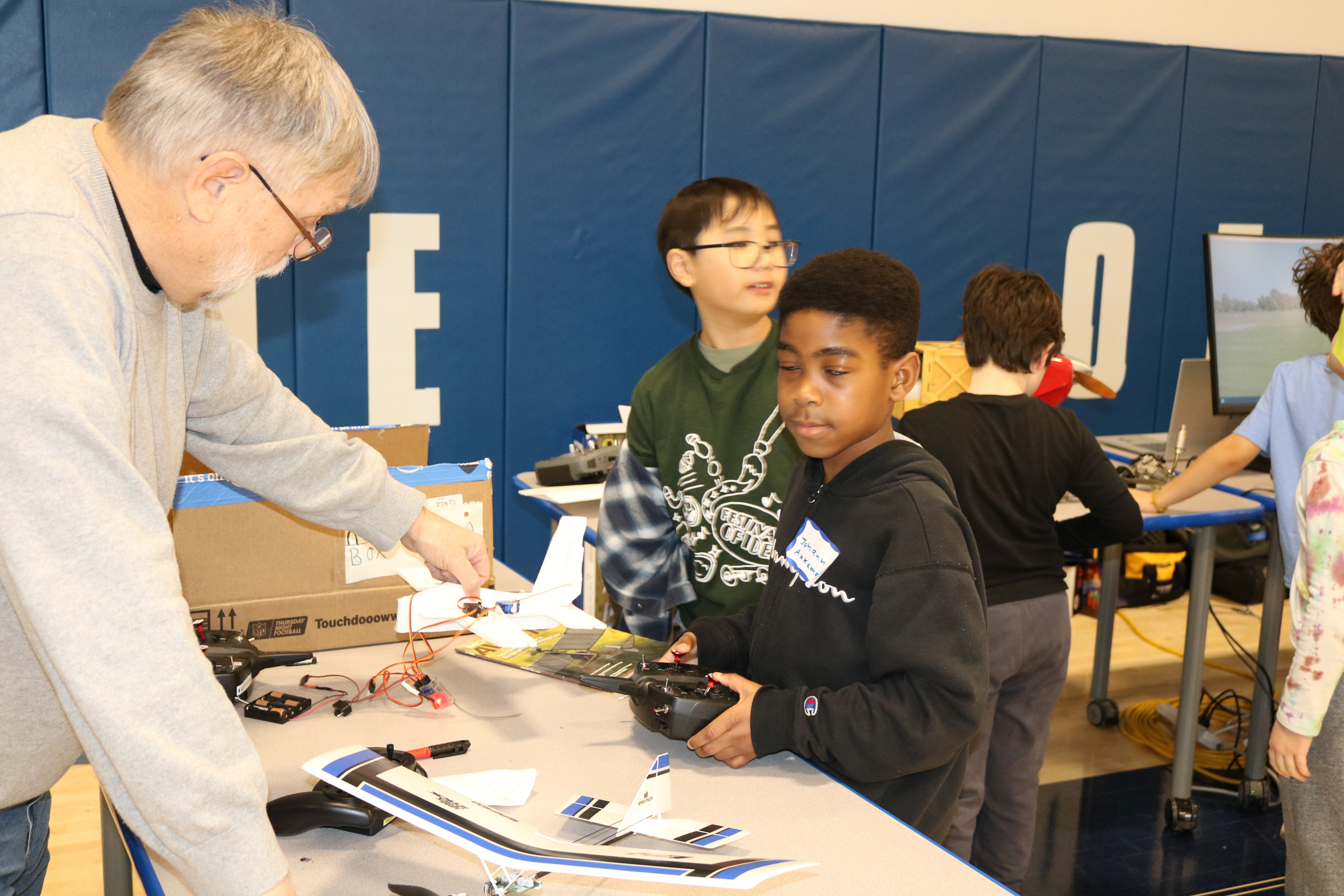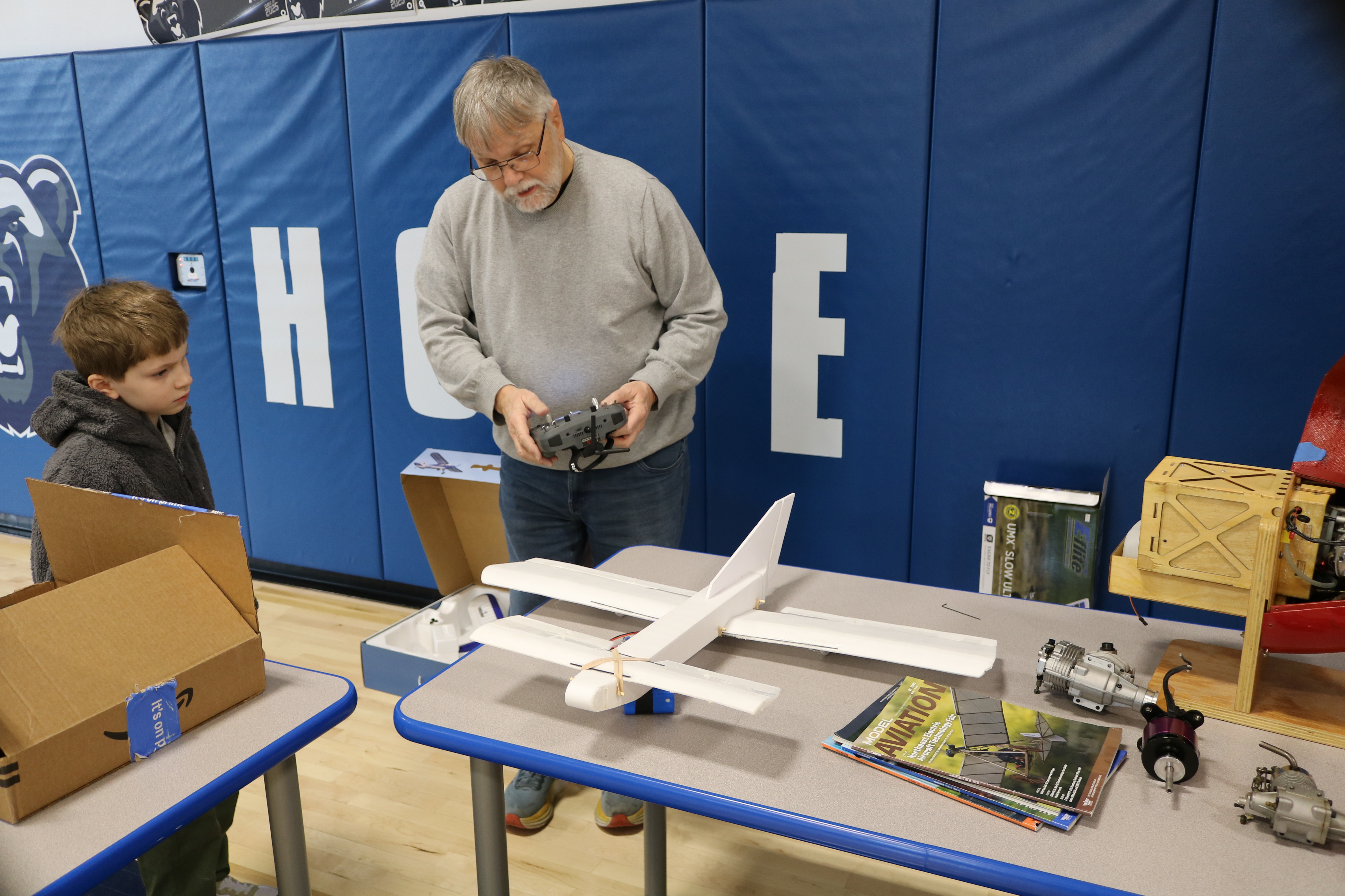 David built the white plane which he used demonstrating how airplanes are controlled by the transmitter.